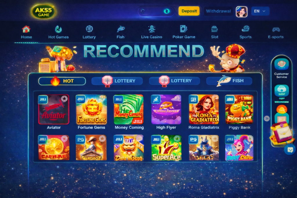 Ak55 Game offers a variety of games and bonuses that appeal to all types of players. Here’s a closer look: